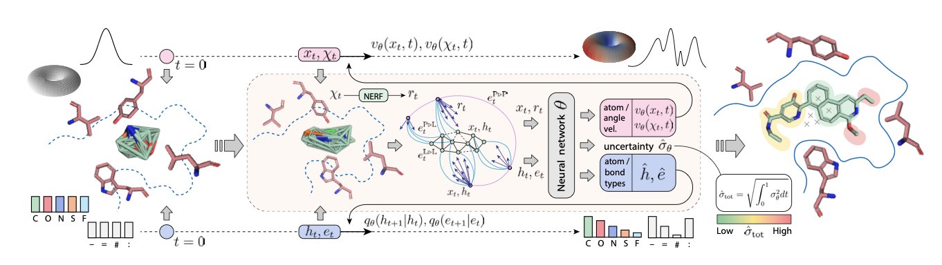 DRUGFLOW 通过结合两种数学工具——连续流匹配(Continuous Flow Matching),可想象为用平滑曲线描绘地形;以及离散马尔可夫桥(Discrete Markov Bridges),可想象为在关键地标间建立逐步路径——来学习蛋白质口袋里所有「好分子」的完整分布。
