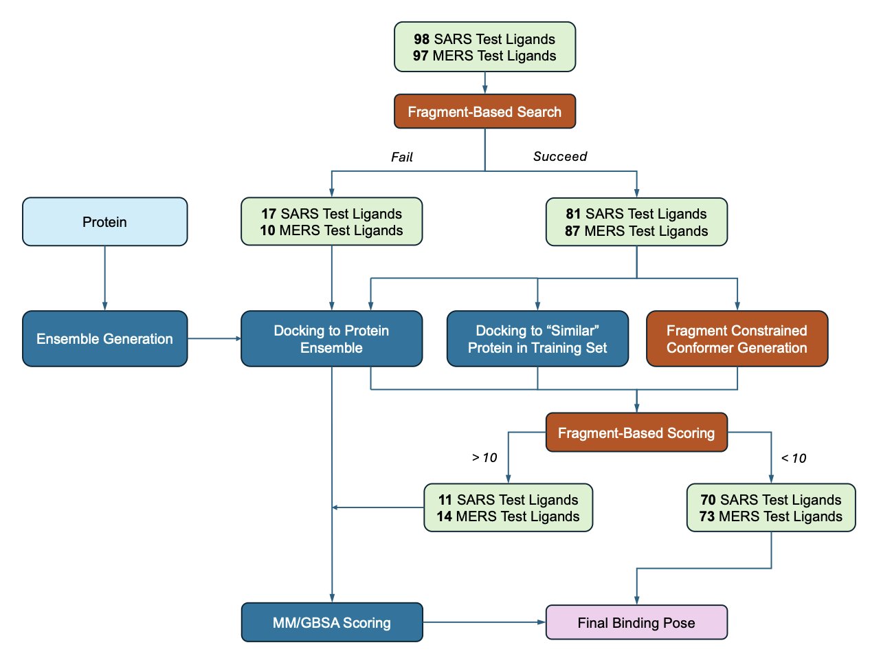 研究者将该流程应用于新冠病毒(SARS-CoV-2)及其近亲中东呼吸综合征冠状病毒(MERS-CoV)的蛋白酶。