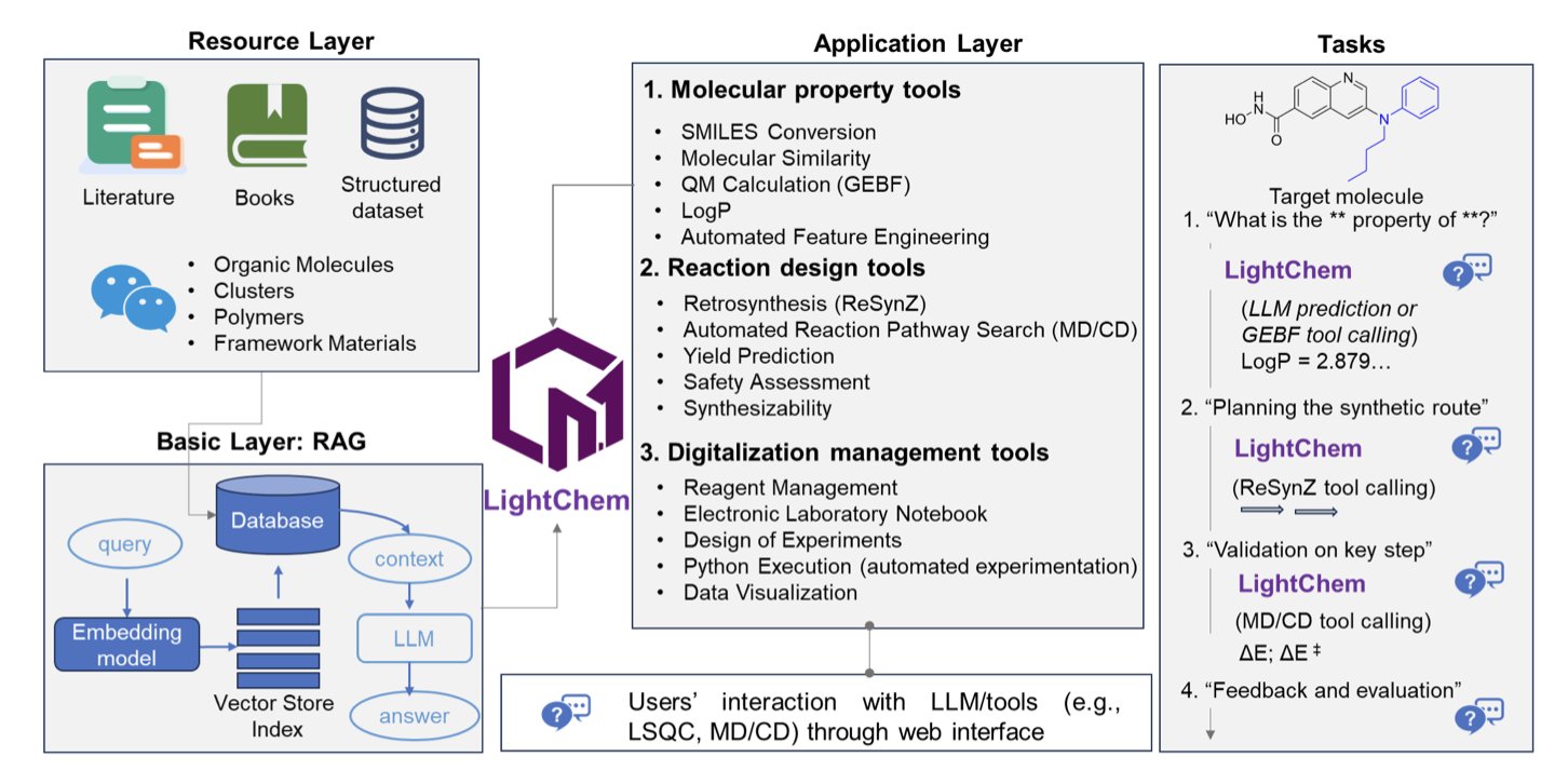- LightChem 将大语言模型的推理能力与成熟的化学计算工具相结合,为化学家提供了一个轻量、精准、且专业的 AI 助手。