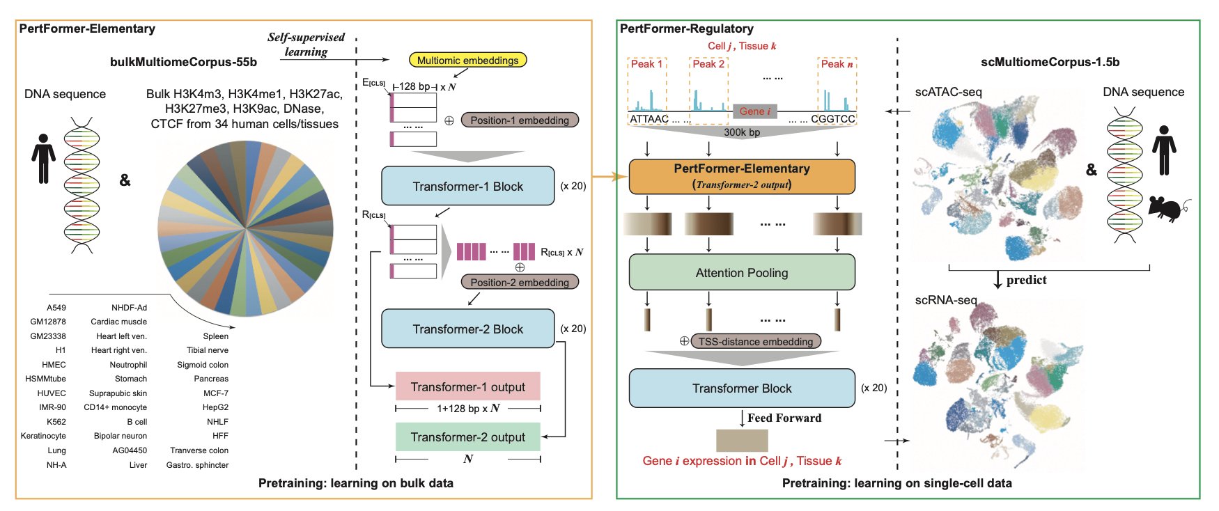 The model has two key modules: 1. PertFormer-Elementary: This part analyzes the “neighborhood” around a gene. It focuses on nearby regulatory elements like promoters and enhancers to understand how they directly affect gene expression. 2. PertFormer-Regulatory: This part observes the “city-level traffic planning.” It can see long-range regulatory interactions up to 300,000 base pairs away. Often, a gene’s on/off switch isn’t right next to it but far away. This module is designed to capture these distant interactions.