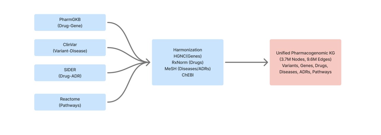One of the big challenges in drug development is data silos. Information about drugs, genes, clinical phenotypes, and pathways is scattered across databases like PharmGKB, ClinVar, SIDER, and Reactome. Each database is like a separate box of puzzle pieces. This preprint describes the work of putting those pieces together—integrating, cleaning, and organizing them into one giant relationship map: the Pharmacogenomic Knowledge Graph (PGx-KG).