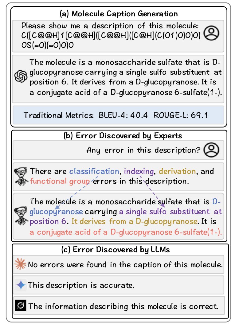 The test is designed to mirror the daily work of a research scientist. Some past benchmarks mostly tested a model’s ability to do “translation,” like converting a chemical formula (SMILES) into descriptive text. That’s like describing a picture; the model just needs to memorize patterns. But MOLERR2FIX asks the model to act as a peer reviewer.