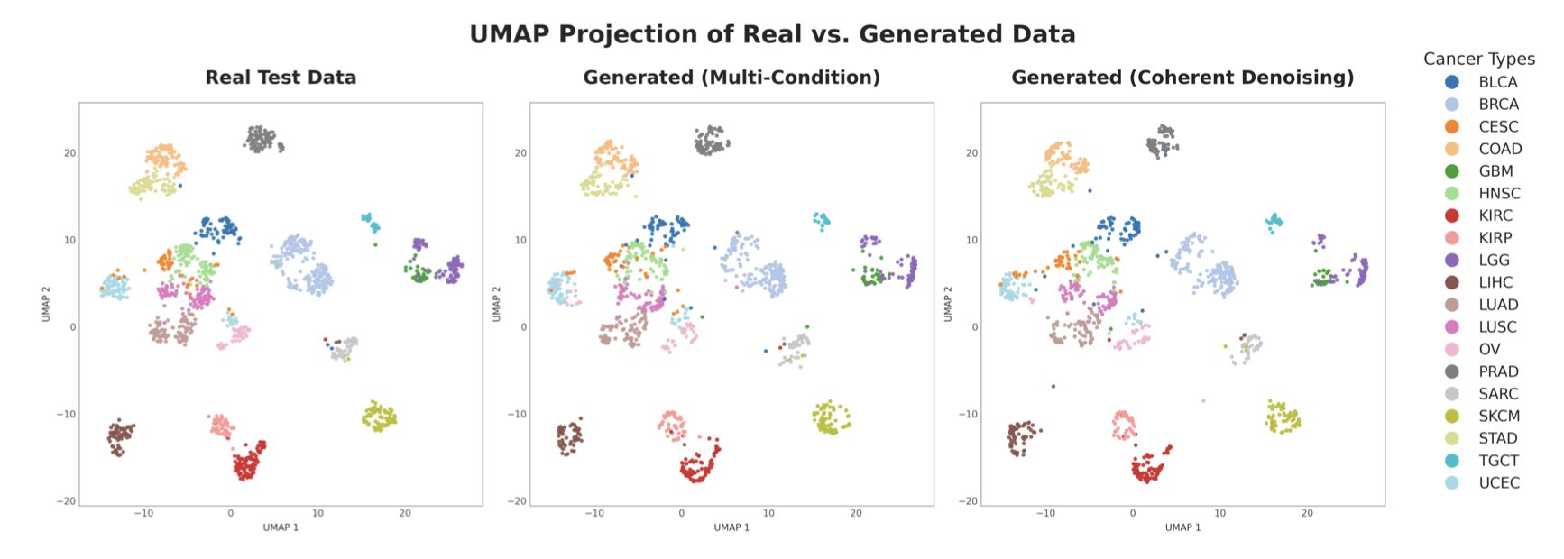 A traditional approach might be to use a single “all-knowing” model to guess the missing part based on the available information. But a single model can easily make mistakes, like a person who knows a little about everything but is an expert in nothing. “Coherent Denoising” works differently. It gives the task to this expert committee. The MRI expert says, “Based on this image, I infer the gene expression data should look like this.” The pathology expert says, “From the cell morphology, I predict a different gene expression pattern.” The core mechanism of this framework forces these experts from different fields (i.e., multiple single-condition models) to reach a consensus. They must generate a coherent set of gene expression data that all experts agree on, through “negotiation” and “voting.”
