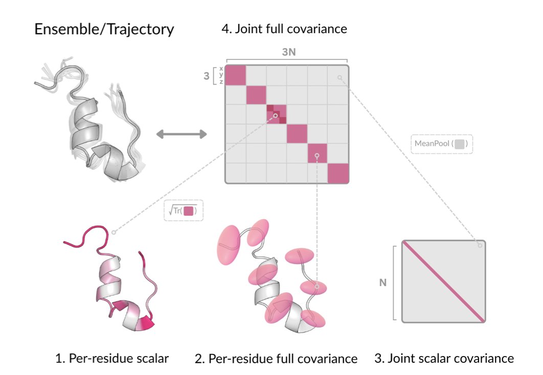 But protein movements are coordinated. Motion in one region can affect a distant region—this is known as allostery. DynaProt captures this long-range coupling by predicting the “joint scalar covariance” between residues, a value that reflects the correlation strength between the movements of any two residues.