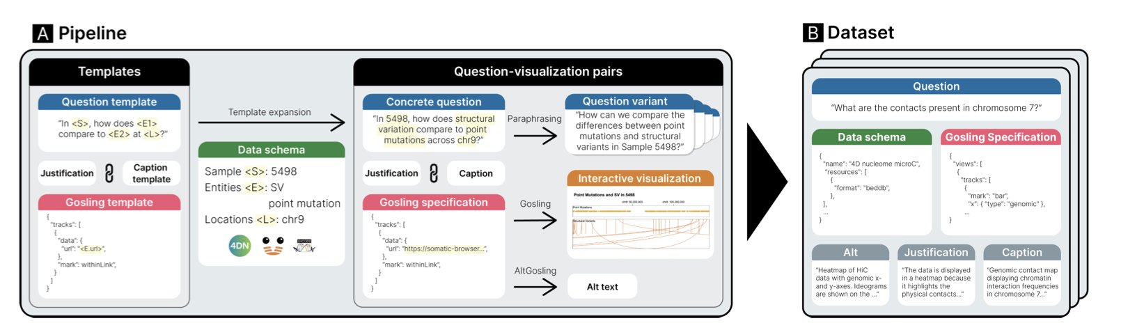 - GQVis is a large-scale dataset built for genomics, designed to train AI models to turn natural language commands directly into complex, professional visualizations.