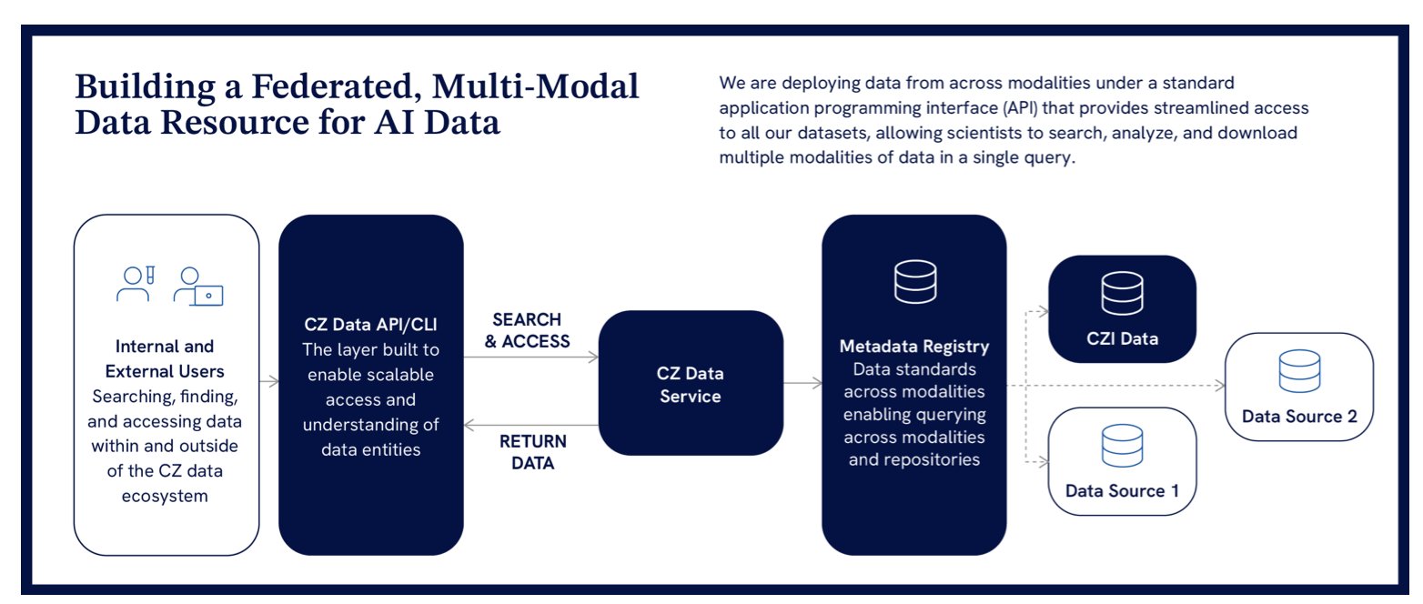 - CZI is building an open, federated data ecosystem to address the core problem of biological data being plentiful but disconnected, paving the way for AI-driven cell biology research.