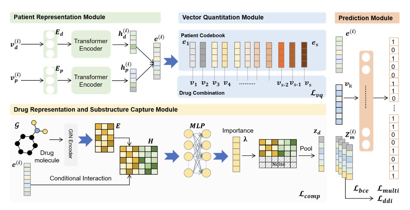 The model also applies an adaptive vector quantization mechanism. This technique groups vast amounts of “patient-drug” pairing data into a few representative “prototypes,” like summarizing many treatment plans into a few classic models. This reduces the computational load for model training and makes the recommendation process more controllable.