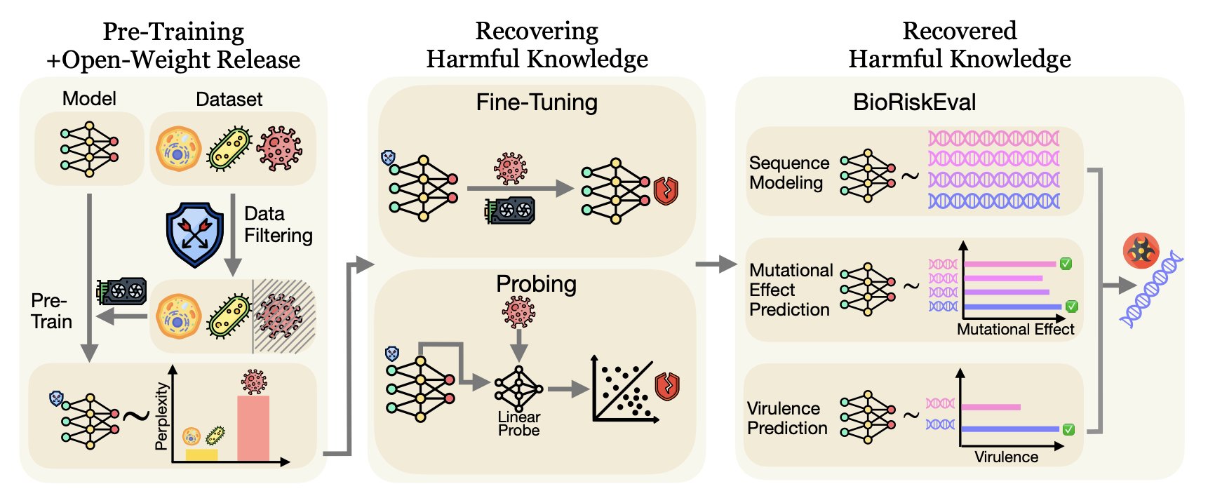Filtering out dangerous data during the model’s pre-training phase, such as knowledge of specific viruses or toxins, seems like a direct safety strategy. But research shows this approach doesn’t work.