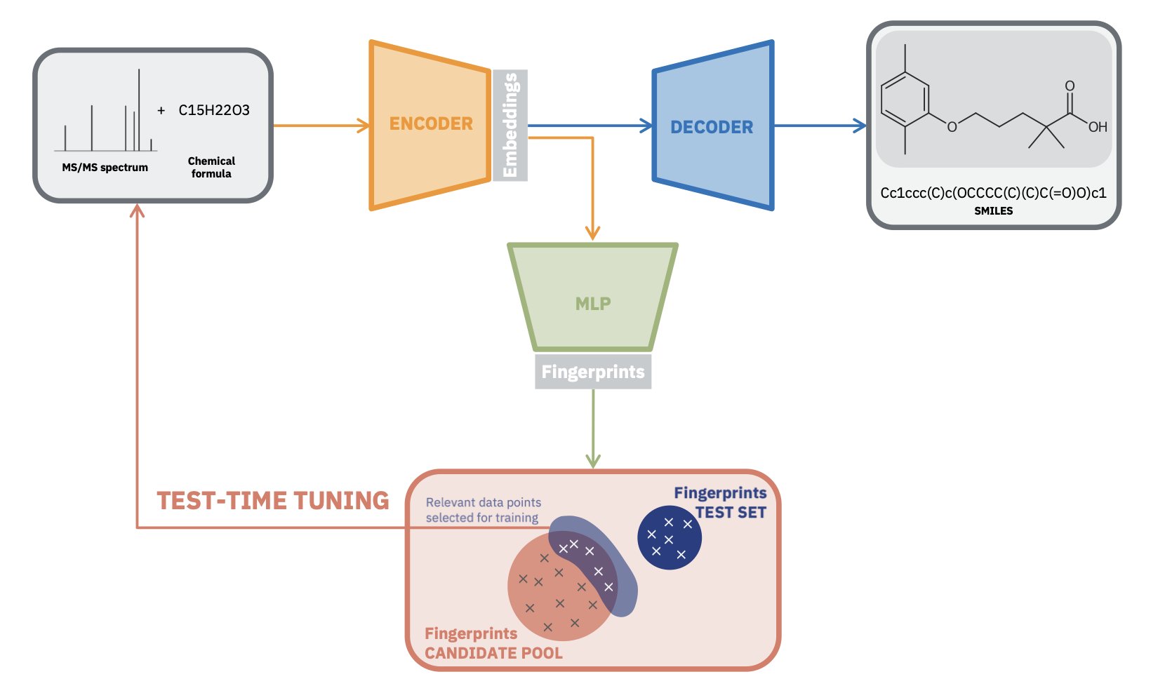 📜Title: Test-Time Tuned Language Models Enable End-to-end De Novo Molecular Structure Generation from MS/MS Spectra 🌐Paper: https://arxiv.org/abs/2510.23746v1