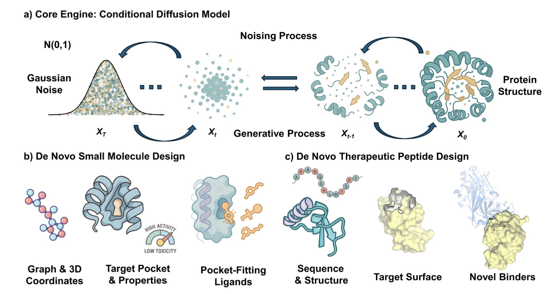 A recent review on the use of Diffusion Models in drug discovery systematically compares their application in two areas: small molecules and therapeutic peptides. This provides a unique perspective.