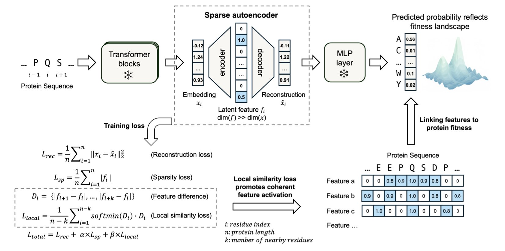 A key innovation in MotifAE is the introduction of a “local similarity loss.” This design encourages amino acids that are close together in the sequence to also remain close in the encoded feature space. As a result, the identified features are more likely to represent continuous functional motifs.