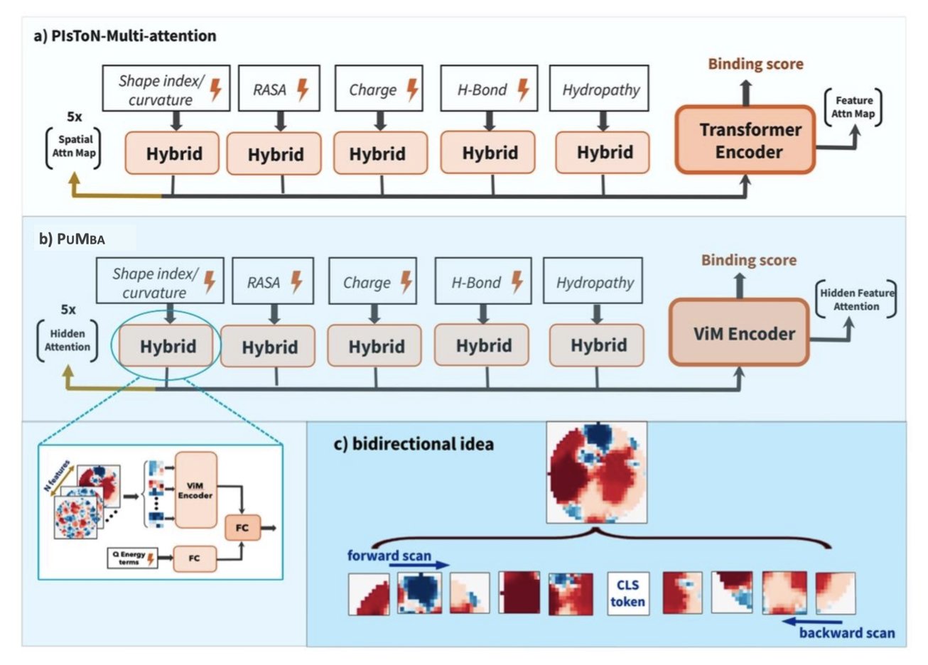 PUMBA applies the Mamba architecture to evaluate protein docking interfaces. It converts the interaction interface of a protein complex into image-like data for analysis. Using Mamba’s strengths, PUMBA can simultaneously capture local chemical interactions, like hydrogen bonds and hydrophobic effects, and the overall shape complementarity of the interface.