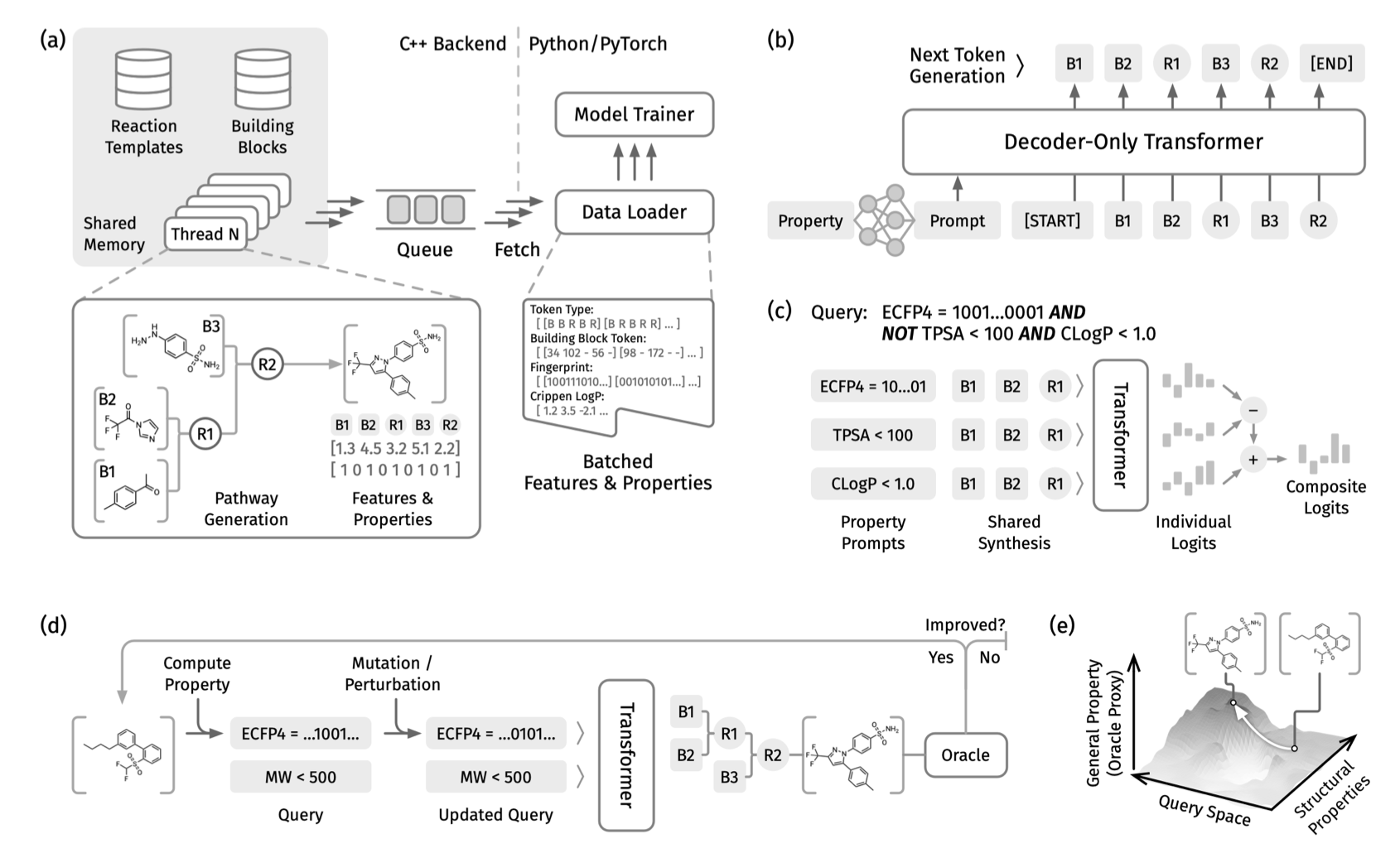 The model uses a decoder-only transformer architecture trained on a dataset of one billion “synthesis path-molecular property” pairs. It works like a translator: you input the desired molecular properties (like a specific LogP range, molecular weight, or target activity), and it outputs a “recipe” to synthesize a molecule that fits.