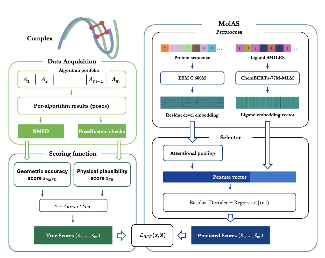 - MolAS picks the best docking algorithm, boosting accuracy, but it also reveals that the instability of the docking process itself is the bigger challenge.