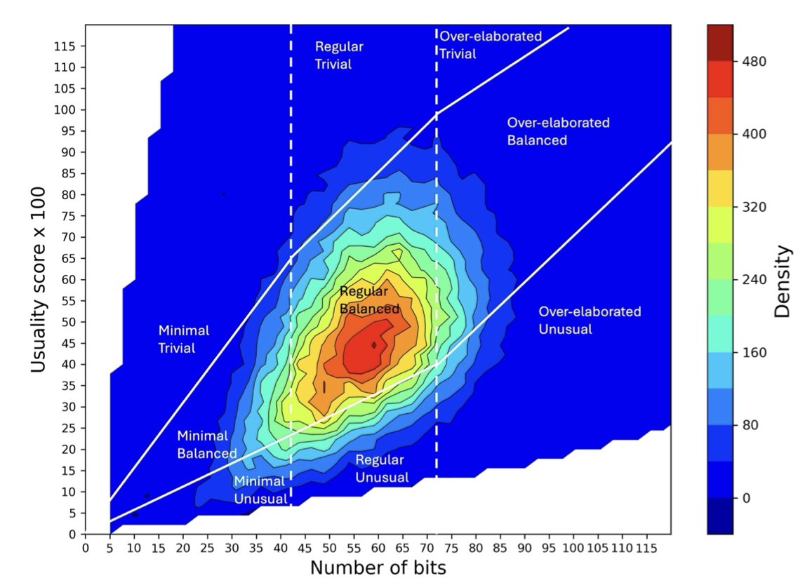 The y-axis is the molecule’s structural complexity, measured by the number of bits in its ECFP4 molecular fingerprint. More bits usually means the molecule is larger and structurally richer.