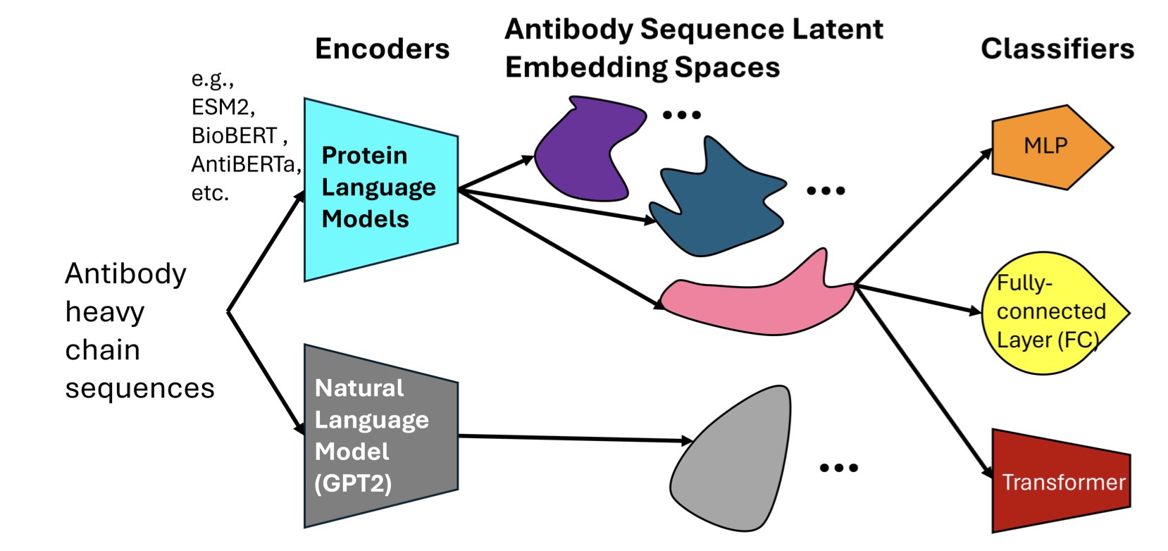 The researchers selected a few models: AntiBERTa, designed specifically for antibodies, and general protein models like ESM2 and BioBERT. They gave these models the task of predicting which antigen an antibody would bind to based on its sequence.