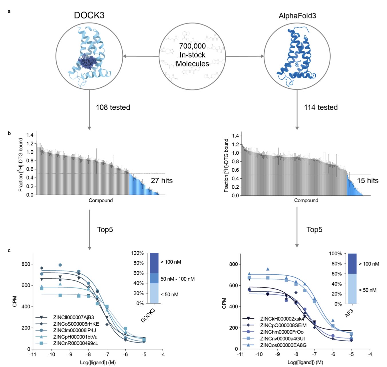 Recently, a team at UCSF led by Brian Shoichet and J.J. Irwin posted a paper on bioRxiv that gives us the first detailed “road test report.” They ran a series of tests to see what AF3 is really capable of. First was a “retrospective” test, like an open-book exam, to see if AF3 could pick out known active ligands from a pile of molecules. Then came the more important “prospective” test, a closed-book exam where they used AF3 to screen a real drug target—the sigma-2 receptor—and then bought the predicted molecules to test their activity in the lab.