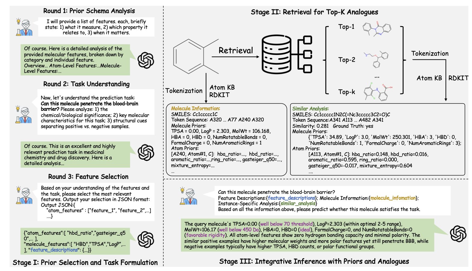 The first step is Analyze. When the model gets a chemistry question, like “predict this molecule’s solubility,” it doesn’t just guess. It first analyzes the question to figure out what key chemical knowledge is needed to solve it. For example, it might determine that the “number of hydrogen bond donors/acceptors” and “polar surface area” are important features.