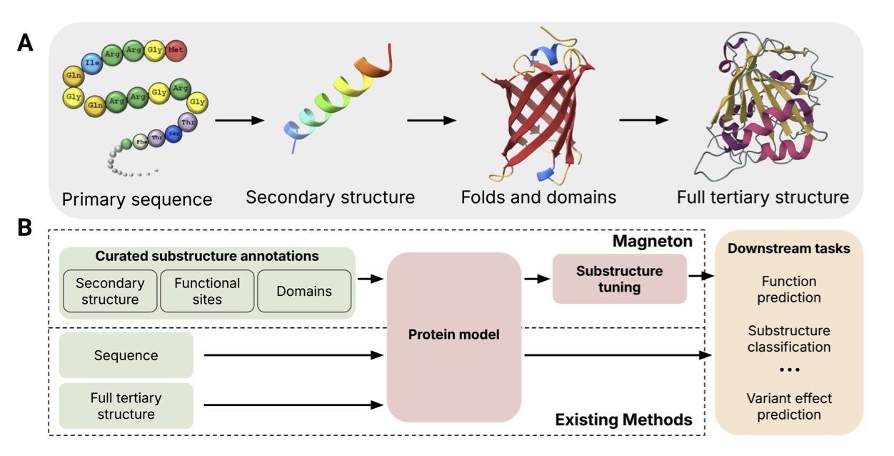 - By explicitly teaching a model to recognize the functional substructures of proteins, researchers achieved a leap in performance for protein language models on function prediction tasks, even outperforming models that rely solely on global structure.