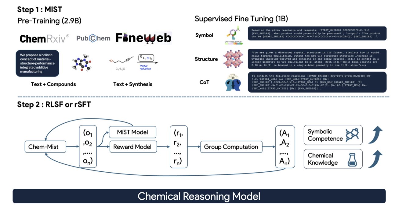 Step 2: Advanced seminars to learn problem-solving methods. This is the most clever part of the MiST framework. The researchers didn’t just feed the model a bunch of question-answer pairs. Instead, they gave it a large number of “reasoning traces.” This is like watching an experienced chemist solve a problem, writing out every step of their thought process on a blackboard: “First, analyze functional groups A and B in the reactants; second, based on the reaction conditions, determine this is a nucleophilic substitution reaction; then, predict the likely products and byproducts…” By learning these complete chains of thought, the model learns how to analyze and reason like a chemist, not just memorize answers.