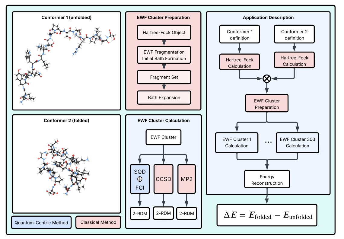 So what were the results? They used this hybrid workflow to calculate the energies of the Trp-cage in both its folded and unfolded conformations. The results showed that the method could accurately distinguish the energy levels of these two states, which is consistent with known experimental and classical computational results. This demonstrates the method’s effectiveness. It’s not just a toy problem on a toy molecule; it can solve problems with real biological significance.