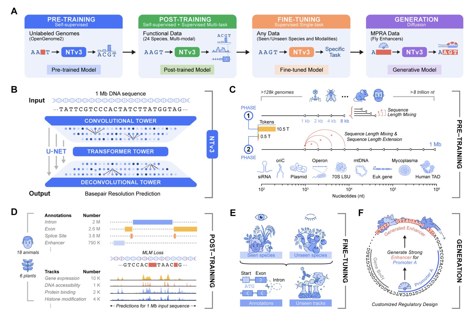 - NTv3 is the first model to integrate accurate genomic sequence prediction and controllable generation into a single, unified, cross-species foundational model, enabling both “reading” and “writing” of the genomic language.